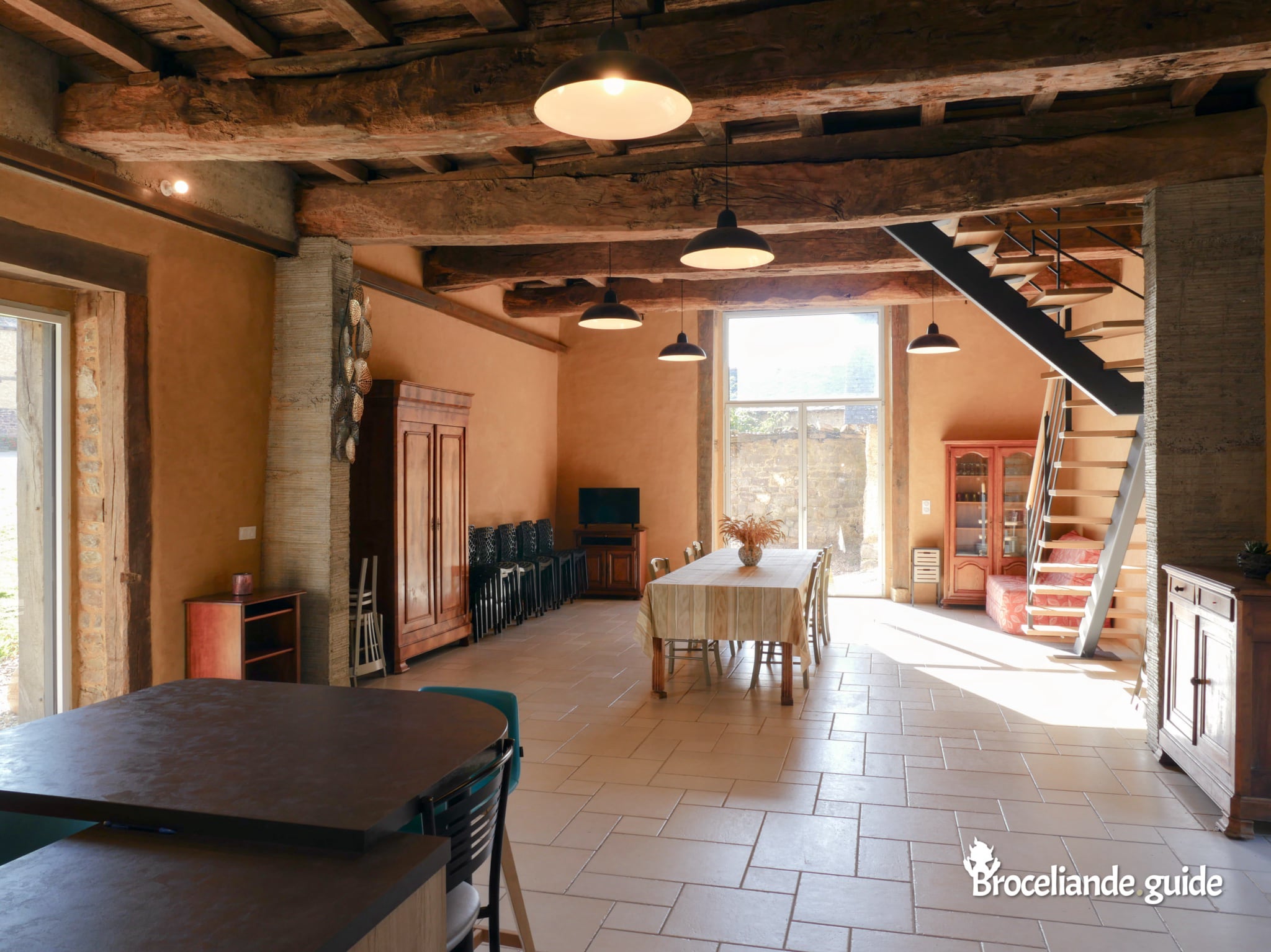 Le gîte La Métairie, vaste bâtisse de caractère de 156 m2, entièrement restaurée avec des enduits à la terre et à la chaux, dégage une atmosphère chaleureuse, que vous veniez en petit groupe ou en solo. Grâce à ses volumes généreux et à ses espaces conviviaux, il constitue le lieu idéal pour des retrouvailles en famille, entre amis, ou pour un séjour professionnel au vert.